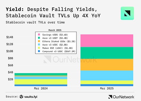 DeFi:Yields across leading DeFi protocols have dropped sharply BUT Activity in the largest stablecoin markets continues to grow however, even as rates fall.: OurNetwork