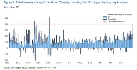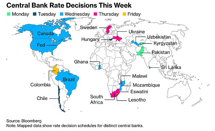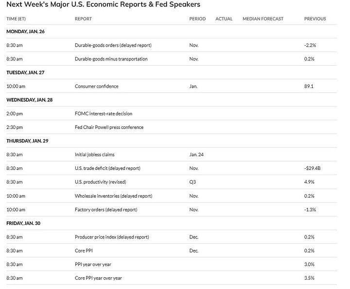 FOMC Meeting (expected to leave rates unchanged); focus will on timing of the next rate cut as recent data show signs that the economy is improving (Economists now expect the Fed won’t cut interest rates until June); BI Says: “The most interesting figures to watch are Governors Waller and Bowman: If they vote with the majority to hold steady, they’ll be signaling to Trump that they side with Powell — including on Fed independence. We expect Waller to vote with the majority, but Bowman to dissent.” Powell’s press conference will be the first since he disclosed DOJ subpoenas affecting the Fed